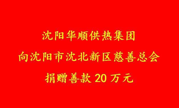 沈阳华顺供热有限公司、沈阳华顺能源科技有限公司 向沈阳市沈北新区慈善总会捐赠抗击疫情善款人民币20万元;
