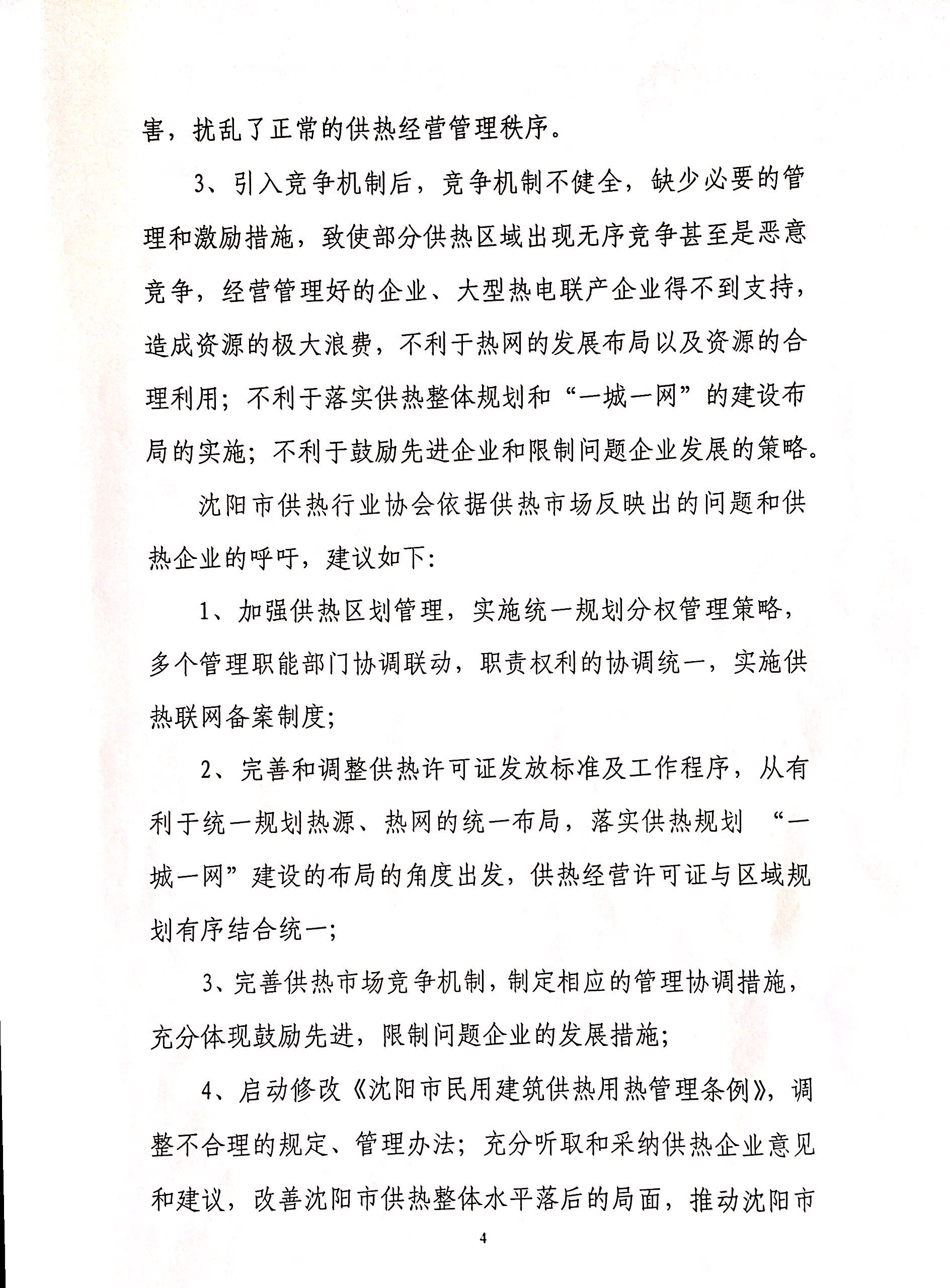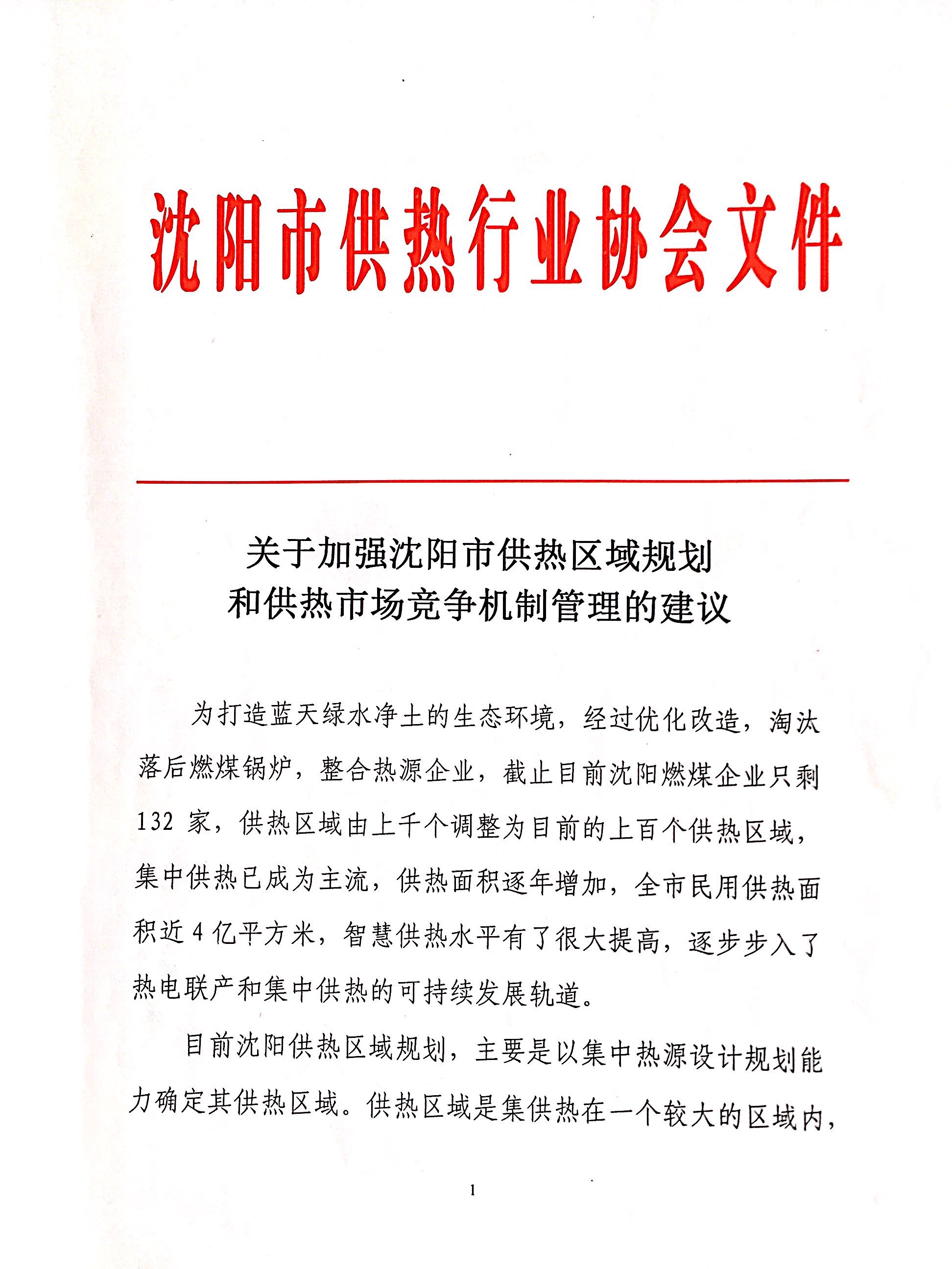 沈阳市供热行业协会依据供热市场反映出的问题和供热企业的呼吁,建议如下: