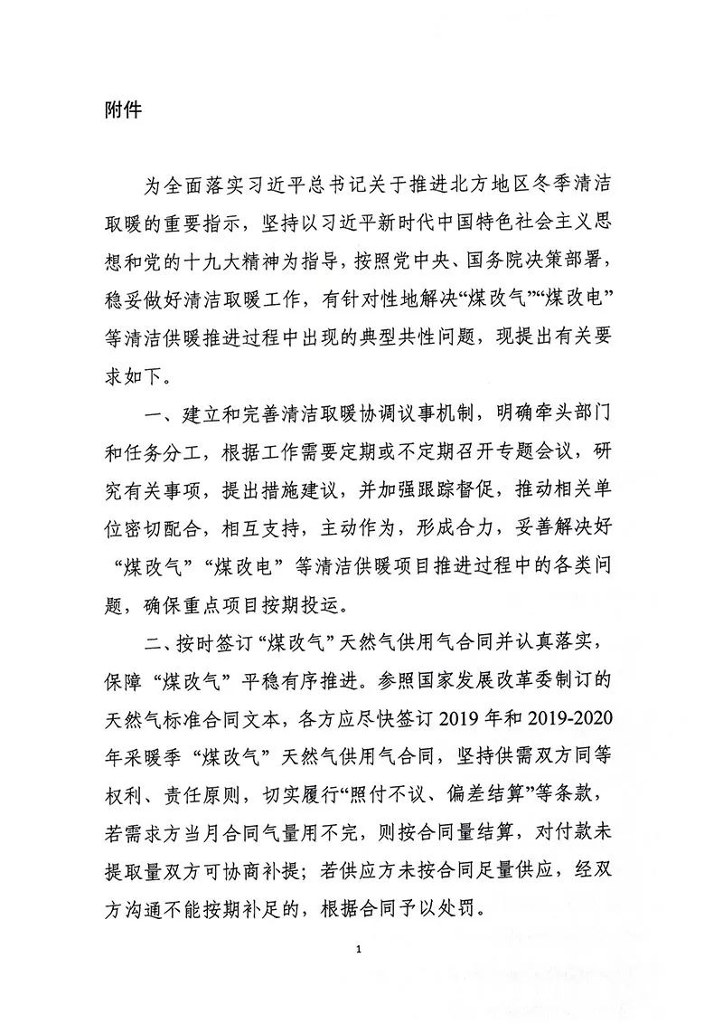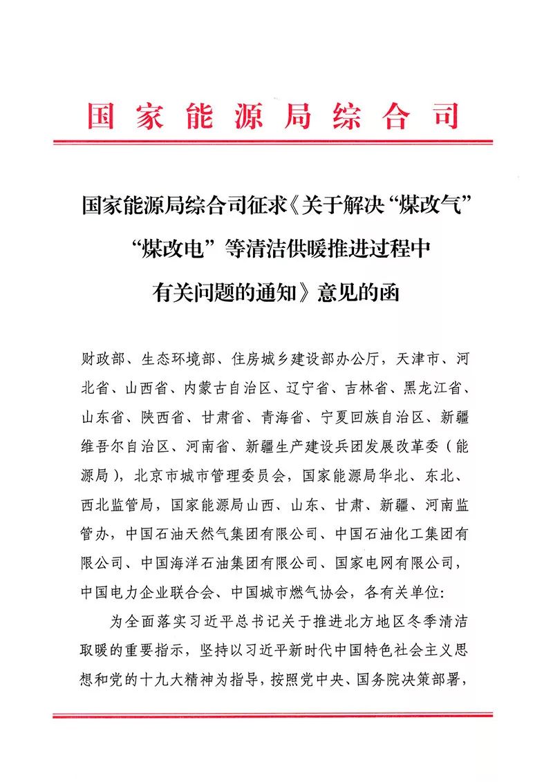 通知丨国家能源局综合司征求《关于解决“煤改气”“煤改电”等清洁供暖推进过程中有关问题的通知》意见的函