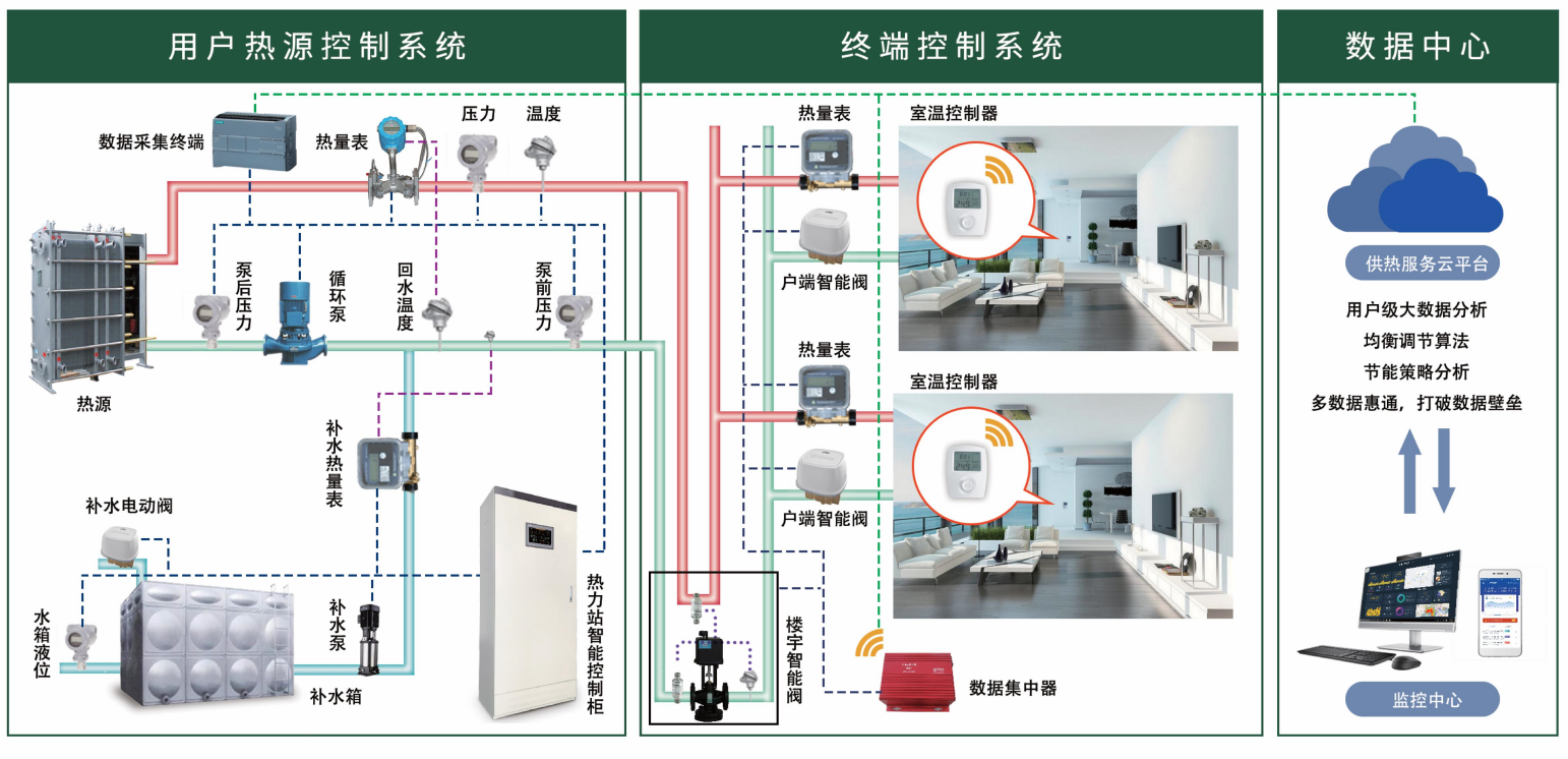 4. 热力站+用户端二次网联动调节系统,调节快速有效