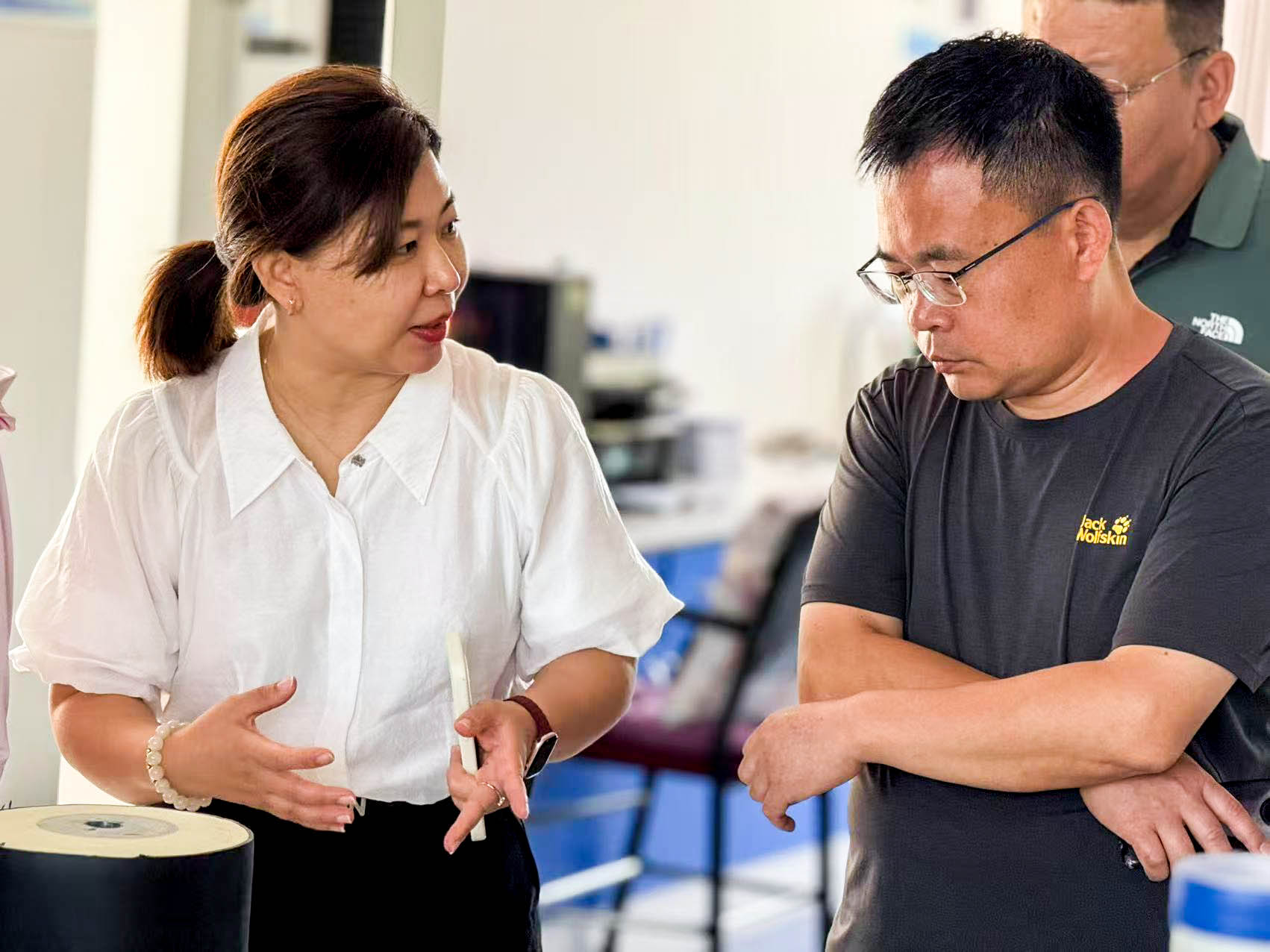 引领下,调研团先后走进了办公楼、实验室及生产车间,重点参观了