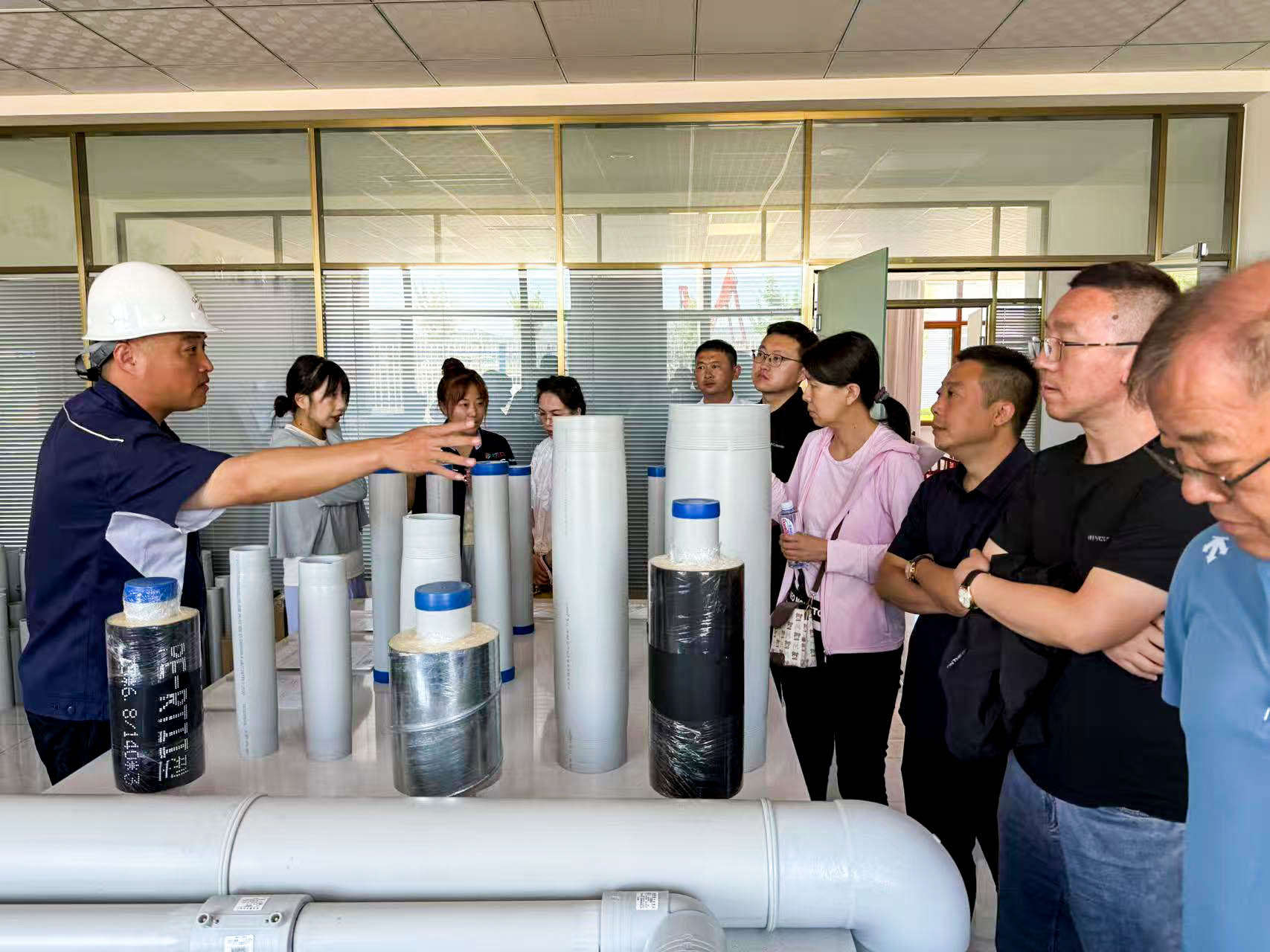。现代化的全自动化生产线高效运转,从原材料的投入到成品的产出,每一个环节都展现出先进的技术水平和严格的质量把控。工作人员详细介绍了聚氨酯聚乙烯预制直埋式保温管等核心产品的生产流程,该产品凭借优良的保温隔热、吸音降噪特性,在供